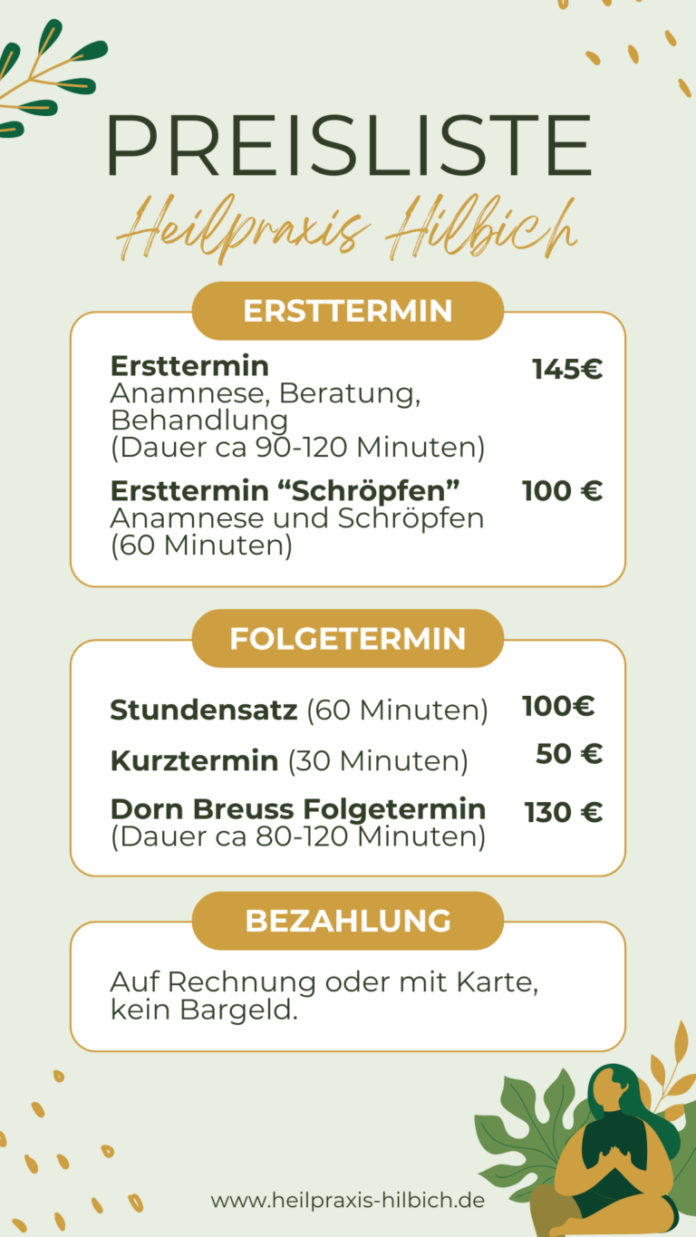Grundsätzlich tragen Sie die Kosten der Behandlung – unabhängig von der eventuellen Erstattung eines Leistungsträgers. Die gesetzlichen Krankenkassen erstatten in der Regel leider keine Heilpraktiker-Leistungen.